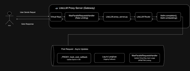User Sends Request: The process begins when a user sends a request to the LiteLLM Proxy Server (Gateway).